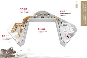 客戶體驗可以增加對產品的好感度,而且印象深刻持久。因此行史館想要達到宣傳的目的,就要讓用戶參與到展館的活動中來,這樣可以讓客戶更好的理解銀行產品。為了防止參與觀眾過多造成場地擁擠,兩個互動區域距離很遠,中間通過紀念品展示區和觀眾休息區連接。